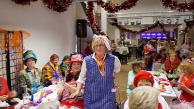 Zurück zum Kneipenkarneval, zur Party „Unger us“- Unter diesem Motto traten die Mädcher aus Rösrath in Marlenes Schlosscafe am 17. Januar 2019 an. Die CDU Frauen Union Rösrath lud zum 2. Mal zur Mädchersitzung ein. Ein festlich geschmückter Saal empfing die herausgeputzten Mädcher. Der Vorstand mit Vera Rilke-Haerst an der Spitze und die Mitglieder der FU zogen mit Marschmusik gespielt von Wolfgang Jägers ein.