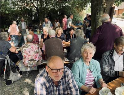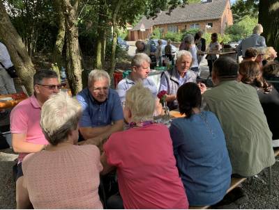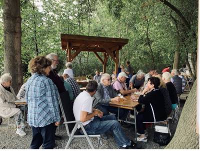Wir haben uns über die Anerkennung unseres Projektes gefreut, unser Landtagsabgeordneter Rainer Deppe, unser Bürgermeister Marcus Mombauer, unser 1. Beigeordneter Ulrich Kowalewski, unser Leiter des Bauamtes Christoph Herrmann und nicht zu letzt Herr Krause mit Herrn Meier, die das Projekt tatkräftig unterstützen. Es gab die leckersten Reibekuchen, das leckerste Kölsch und die beste Musik mit Wolfgang Jägers.